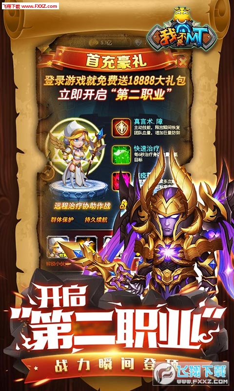 5、登录游戏免费赠送价值18888首充大礼包,立即开启“第二职业”,战力瞬间登顶