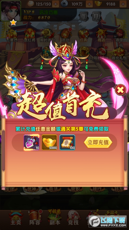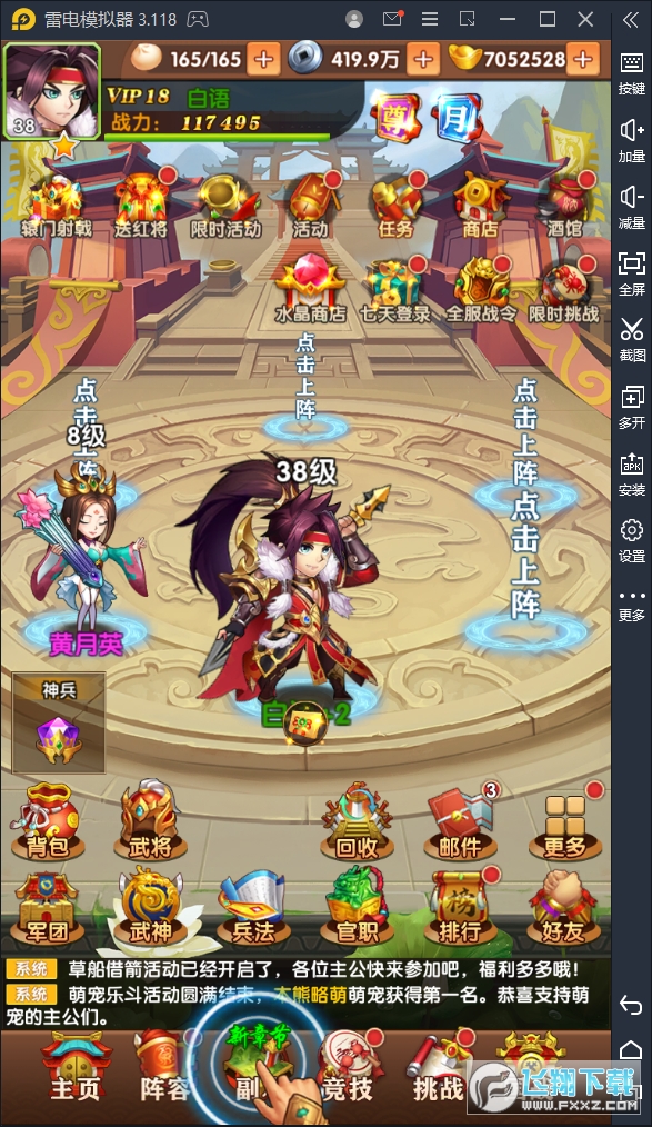 1、登录游戏就送VIP18,元宝*38888,金币*300W,体力*300