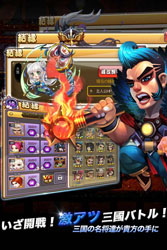 《三国志缭乱战斗》是根基人气插画师的插画,和实际的三国志为基本,超越以往的武将育成游戏,集合的3D游戏。能够品味到阵型,兵的配置,育成武将等战略性的本格战斗。另外还有茅野愛衣、種田梨沙、置鮎龍太郎、前野智昭一等豪华声优起作用。