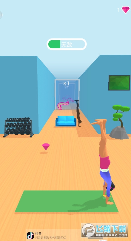1.需要在游戏的关卡下,一边进行瑜伽球的,一边躲避障碍;