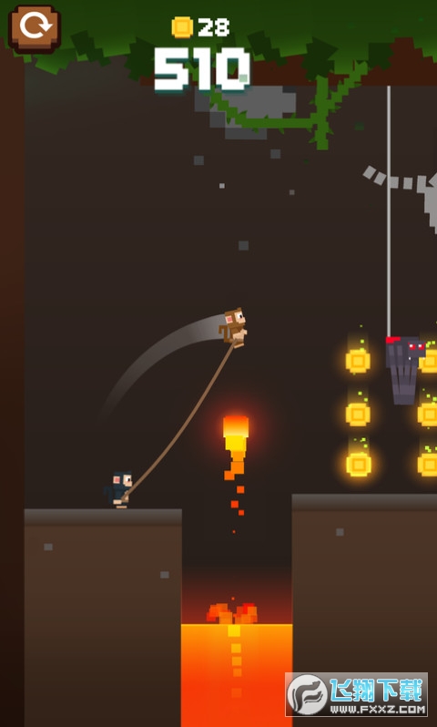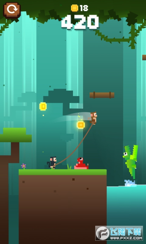 同时长按可以控制力度可以让猴子们跳的更高一些。