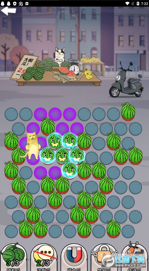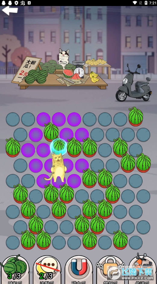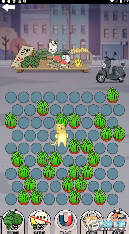 3、你要做的很简单,就是在所给的地图中,利用不同数量的西瓜将神经猫困住即可。