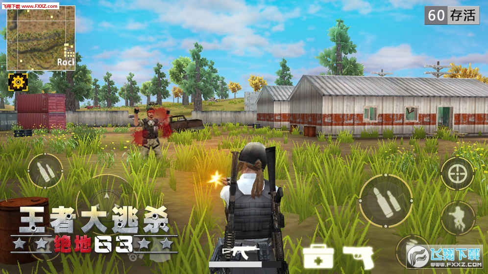 【地图广阔、地形丰富】4公里×4公里的广阔地图,海洋、陆地、山脉、草丛、工厂;丰富的地图元素,让你充分体验关门打狗、飞车抢人头、荒野跑毒的乐趣!