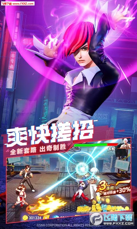 拳皇奥义是一款非常热血的动作格斗类手游,作为拳皇IP旗下的产品,这款游戏有着模式与对战模式,你可以一边了解拳皇里的角色,一边与世界各地的对手激情对战。搜集诸多拳皇英雄人物,跟她们一起战斗,精采真实的博击游戏玩法。灵便的战斗PK,使出绮丽的招数,享有淋漓尽致的作战游戏玩法,丰富多彩的赛事主题活动等着你参加,激情的作战引燃你的严厉打击热情,炫酷的街机游戏公开赛随时随地参加,提升英雄人物专业技能,角逐拳皇之战。