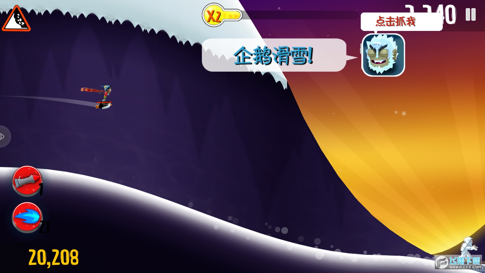 后期才会出现的装备,最稀有也是最强大。滑雪车上可以乘坐三名乘客,除了你之外,还能骑上企鹅,雪人,老鹰,也就是说最多可以承受四次冲击。不过滑雪车最好还是不要让它爆掉,因为到了后期滑雪车就是保命用的东西,雪崩在你的身后猛追不舍,稍不留神就会完蛋。但是滑雪车笨重,很难飞起来,这就要看你的技术如何了。安趣小编教你一个技巧,建议你让滑雪车经常保持喷火焰状态,这样就能冲开你无法飞跃的石头。还有就是要保持滑雪车上高朋满座,这样就可以借助动物来抵消冲击。第一台滑雪车是出现在屋子里,不要错过!