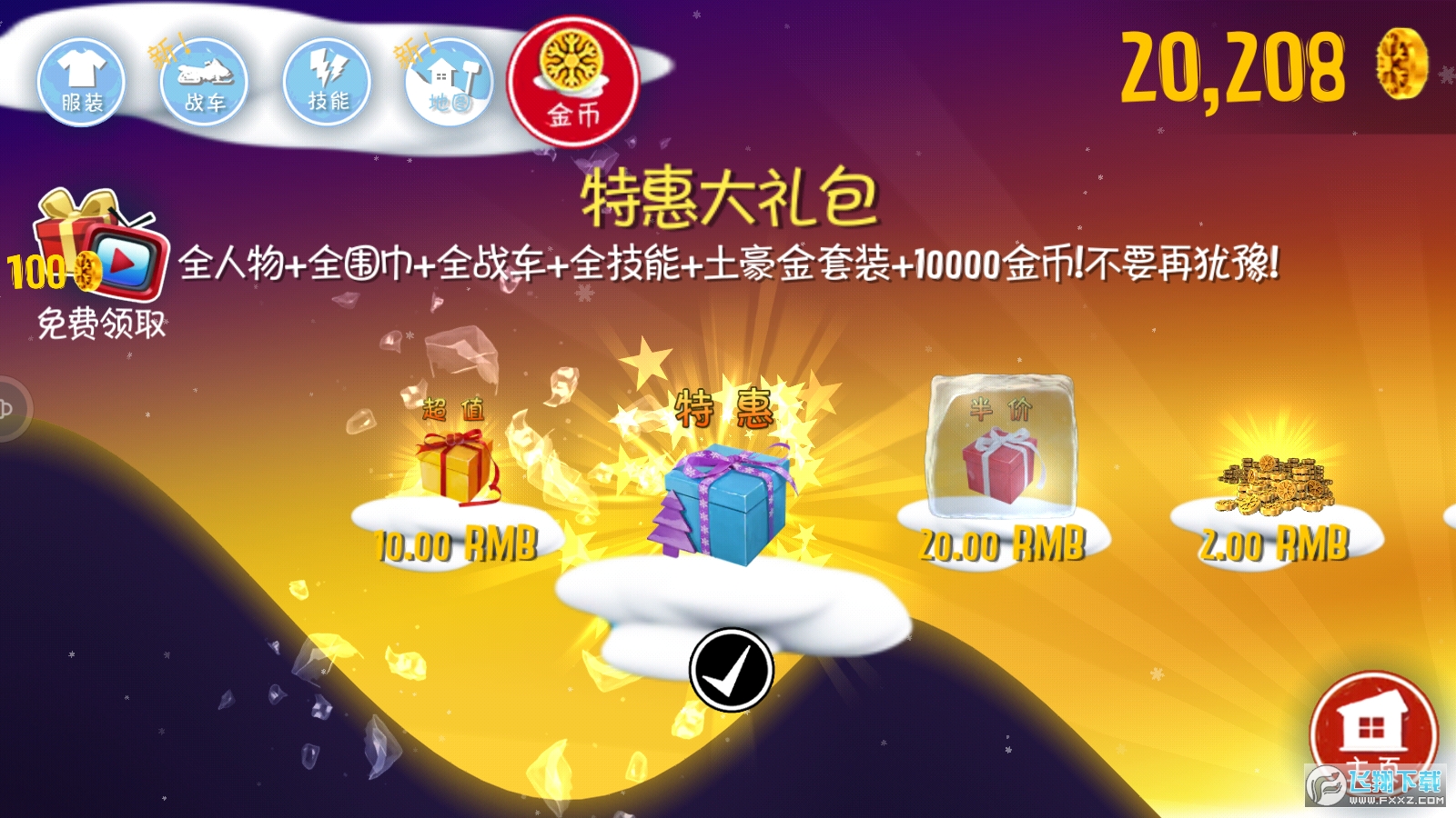 道具装备:劲爆极速云战车、腾云摩托、超多任你选!加速滑行好帮手!