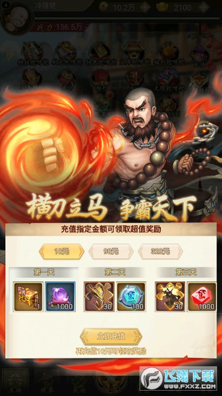 开局霸服豪礼,10星定制武将、万元现金、万元充值卡,强力套装免费得