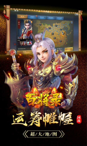 《百将录(上线送VIP)》全新VIP福利版本强势来袭,天下大势,合久必分,分久必合。梦回三国之时,你是否想过自己成就一番宏图霸业?这一次为你还原乱世之景,这里有独特的国战让你施展谋略,更有百余知名武将随你征战沙场。武将缘分、武将突破、兵种培养等多维度培养方式让你手下的武将快速成长!收集材料晋升官职,更有缘分技能上阵助您实力超群;多重争霸玩法,多种情缘玩法,与敌国对手的一较高下,开拓您专属的霸主之路!