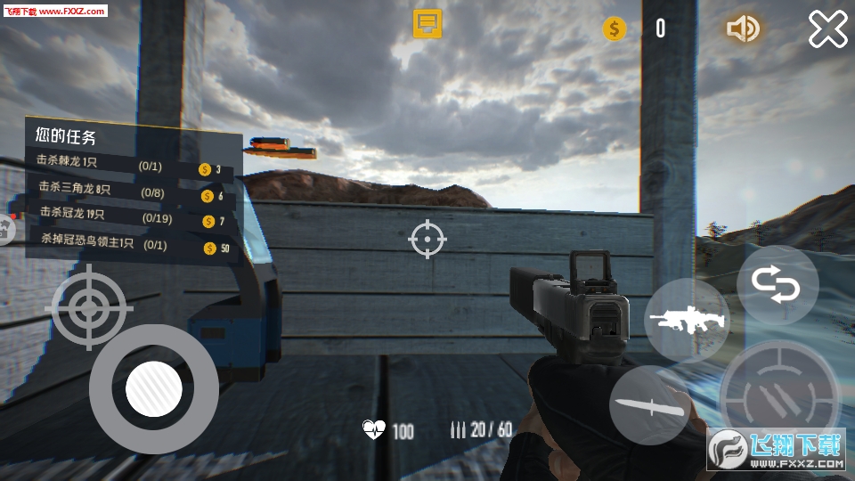 你是一个孤胆英雄谁进入丛林狩猎不同类型的恐龙。你配备了现代化的枪械,并能不断的升级你的武器!狩猎它们吧,并达到下一个水平。 进入史前危险的森林,成为最伟大的猎人。