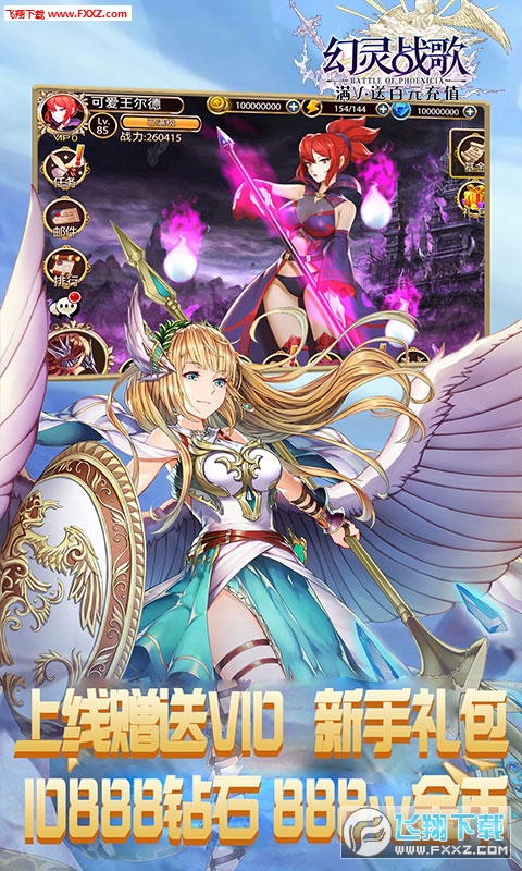 1.上线就送100元充值卡,VIP10,钻石*10888,金币*8888888,不套路,花费直接开玩!2.登录即送奢华礼包,SSR,橙色宝物,橙色装备,更有顶级红色宝具智慧皇冠免费拿;3.每日赠送英雄20连抽,副本轻松获取百倍收益,金币,装备,宝石,技能书疯狂掉;4.副本双倍掉钻石,每天登录送钻石,每天活跃送钻石,上万钻石免费领;5.高充值比例1:500,首充双倍,最高5倍,吐血推荐,千万别错过;6.首充就送4星SSR瓦尔基里*1,橙装太阳剑*1,橙色宝具英灵明灯*1,千万金币,推图无压力;7.暴力修改,副本最高可得顶级UR,放开体力限制,等级秒飞升;