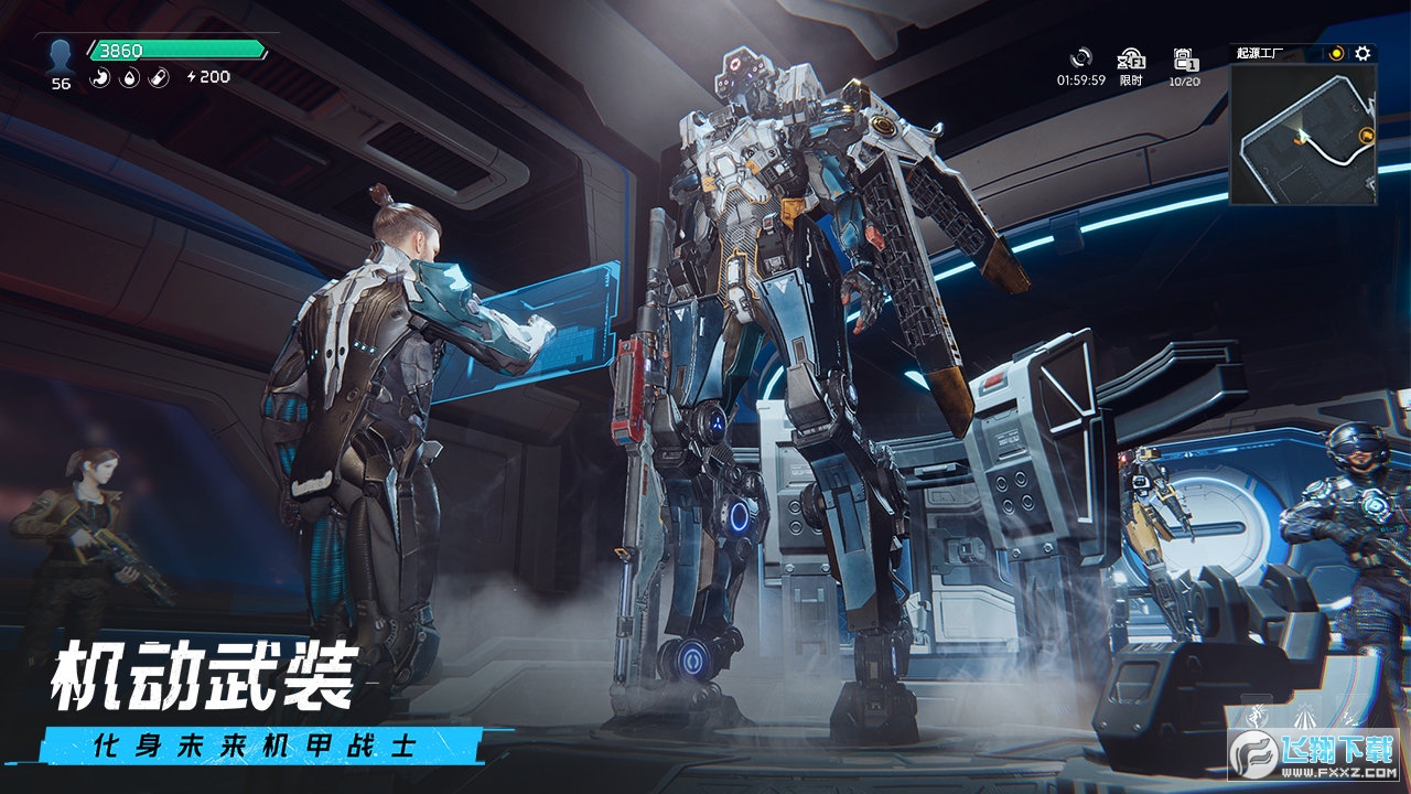 2、恢弘史诗游戏场景呈现,打造全新的未来战场,丰富的游戏玩法,实时组队战斗,召集伙伴,壮大自己的实力,对抗外星生物,守护家园