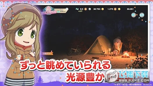 游戏中玩家将一位女孩,尽情享受与好友一起两人露营的悠闲时光,或用手机四处取景拍照。她们的好友千明、葵、惠娜也将客串出场。游戏中借由技术展现逼真的大自然现实光影,除了内容以全语音收录,露营之间还能与其他露营班底互动。
