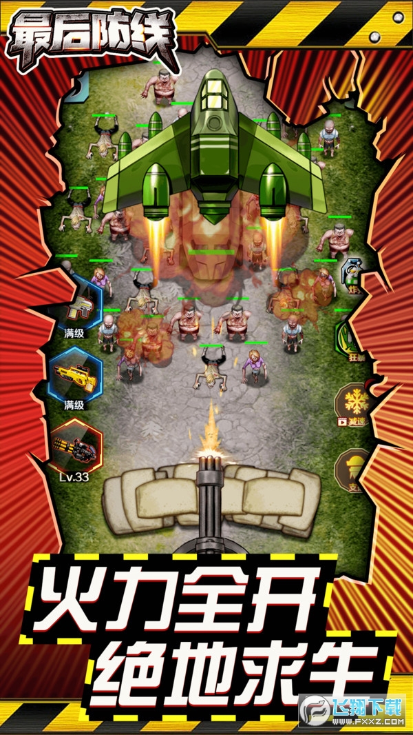 在21世纪中期,地球爆发了核辐射危机,地球大部分区域被核污染,随着污染程度的恶化,出现了大量被核污染的怪物,野狼54连队奉命在经度115、纬度75区域阻击消灭怪物......炮台枪管会进行自动攻击,拖动炮台的枪管进行左右滑动进行方向控制,消灭掉屏幕内的全部敌人则游戏胜利。