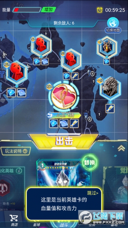 3、技能方面玩每个奥特曼的技能体系都是不同的,可以自由的选择。