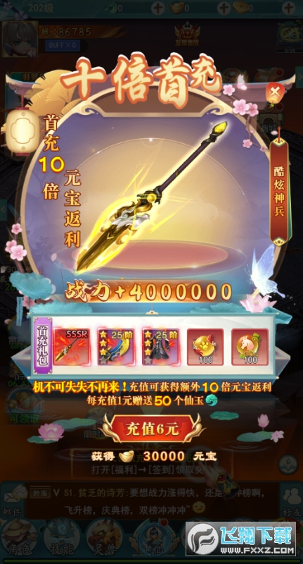 上线福利:送SVIP10、648元充值卡,SR极品时装、超级经验丹*5200