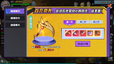 充值比例1元:10金钻★《创角福利》进游送套装体验卡、专属0.1折称号、金币*99999、豪华材料礼包等……★《等级福利》升级可兑换1000元充值,升级抢极品红装★《BOSS福利》击杀BOSS每日最高掉落3000元充值红包★《高倍爆率》超高BOSS爆率,疯狂掉高级装备、高级外观★《登录福利》★次日送超级VIP经验★四日送称号:喵生赢家★七日送时装:蝴蝶套装★21日送超级幸运丹★28日送时装:救赎魔羽