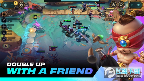 类的策略性游戏模式,八名玩家将会被划分在八块不同的棋盘上,棋盘分为两半,下半部分玩家可以在战斗区域部署英雄,上半部分则是敌方部队出现的区域。八名玩家会轮流进行1v1对战。通过每获得的金币来购买英雄,购买经验值来与玩家与野怪对抗。通过获得更强大的英雄,排列出更强大的组合最终获得胜利。