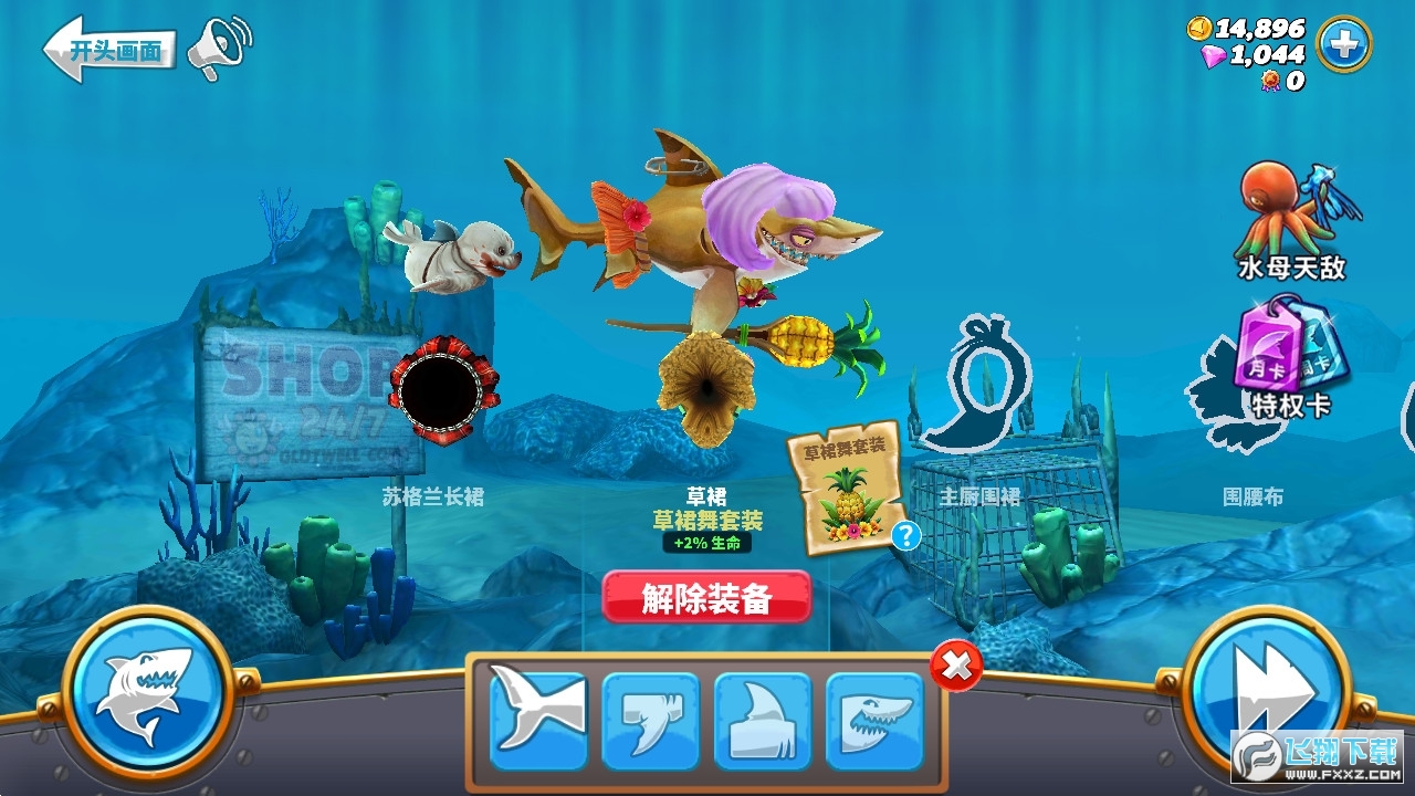 升级你的鲨鱼装上超酷的装备,挑战超过 20 种任务