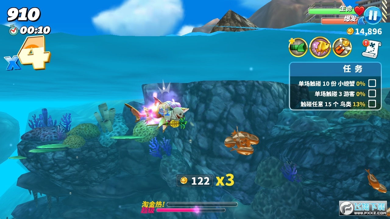 鲨鱼宝宝、鲸鱼、章鱼甚至是白头鹰都有特殊能力增加你的体力、分数还有更多!