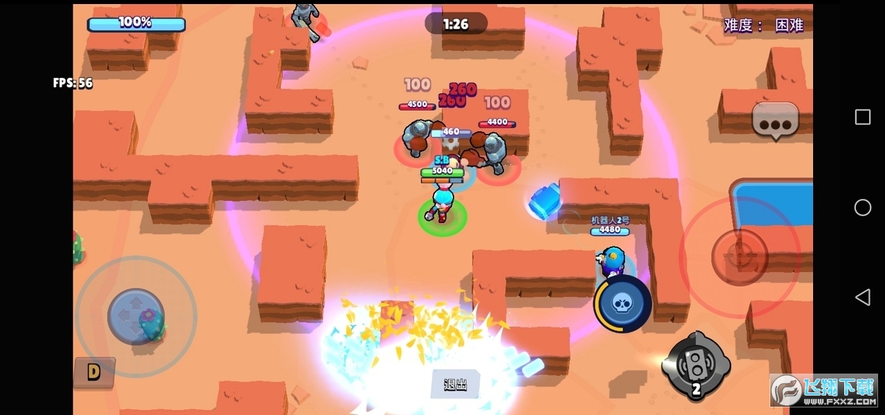 - 荒野决斗(单人/双人):模式,拼到最后。收集能量块,强化英雄。与好友组队或是单枪匹马,成为激战竞技场上最后的幸存者!胜者为王!
