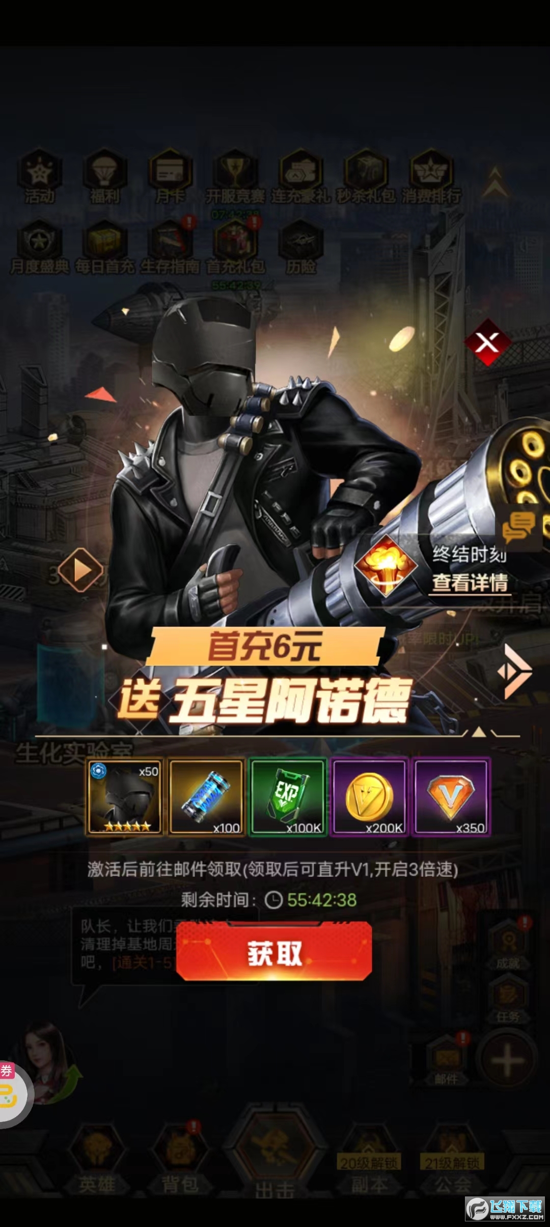 A闯关与时间可获得幸存者经验,vip等级可额外提升挂机时间收益