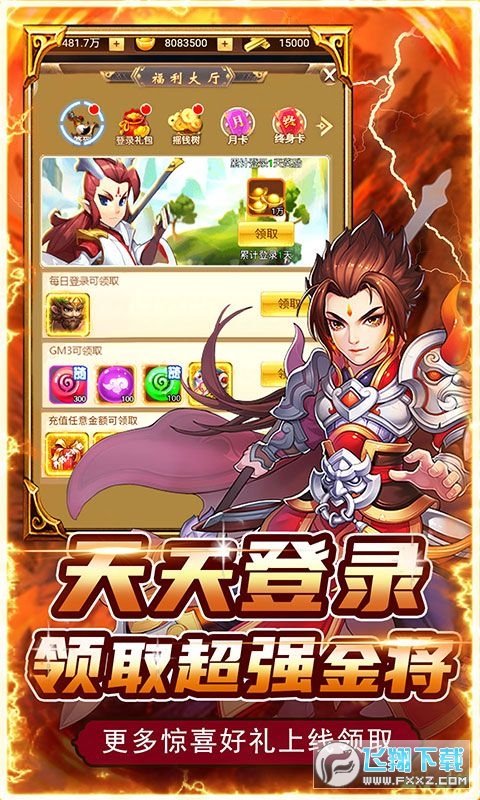 ★上线福利:GM1、500w元宝、648元金条、1亿银两、金绝版武将凭证*5、张飞*1(福利大厅-每日领取)