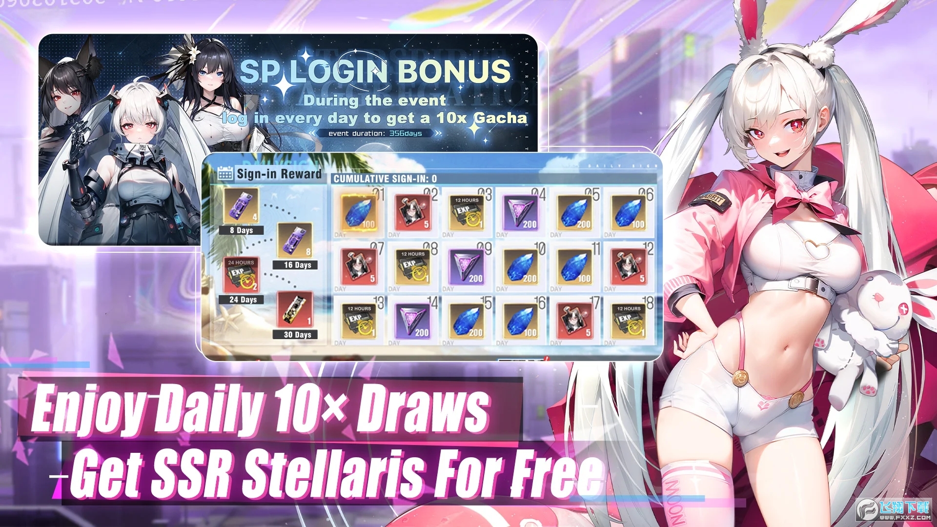 登录即可在 365 天内每天获得 10 次抽奖。免费获得无敌的伤害经销商。在 200 次抽奖中从四个 SSR 角色中选择您最喜欢的角色。