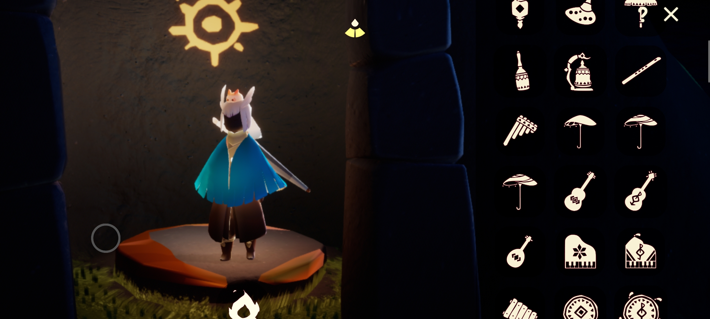 找到石碑前的人影可以打开先祖商店。在先祖商店中我们可以用蜡烛解锁姿势或祝福,用爱心购买新的装扮,还可以购买乐器与好友合奏。