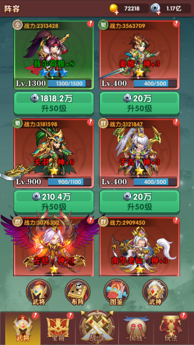 3、拥有上百个各式等级的英雄,包括萌蠢的许褚、酷炫的魏延等,供玩家选择。