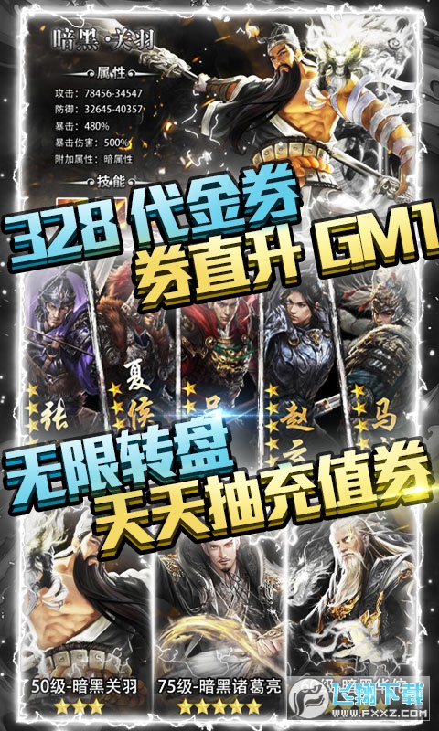 《斗战三国志-送328充值》上线就送328代金券!在线直接送首充!登陆每天领海量元宝!《斗战三国志-送328充值》是一款纯做福利的游戏,每天在线领无限抽奖券可以每天抽真充券!游戏内更有独创的征战玩法让玩家互相攻打城池,还有单刀赴会,跨服争霸、官勋晋升、草船借箭等丰富且有趣的系统,让玩家百玩不厌,流连忘返!
