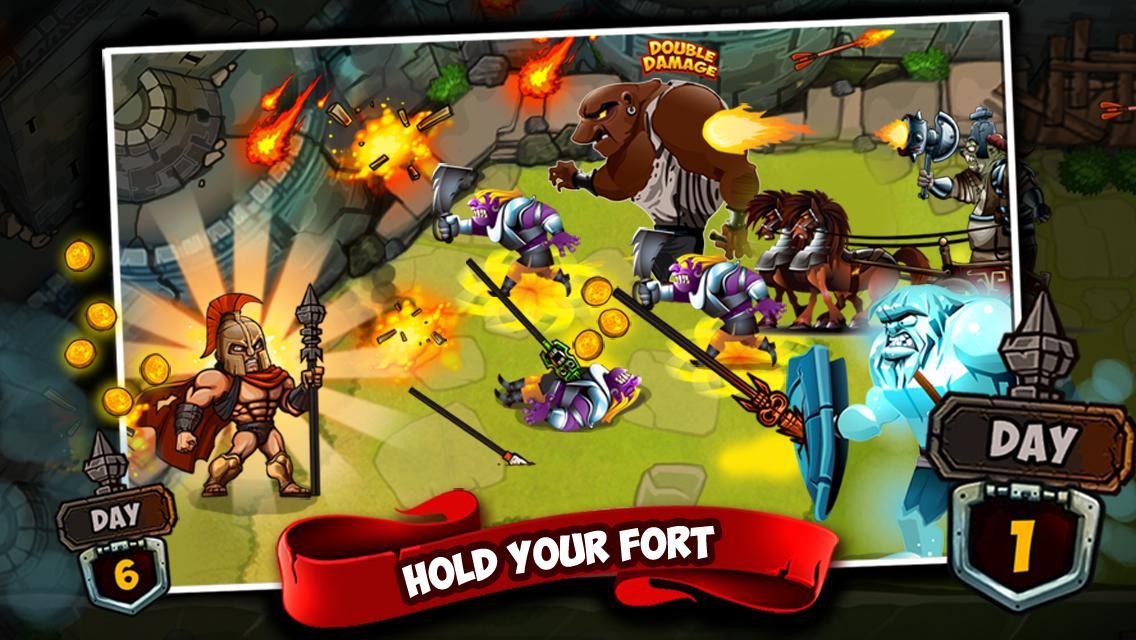 斯巴达战斗是一款融合了防御元素的游戏。游戏中你将一名无坚不摧的斯巴达战神,站在坚固的城墙之上,击退一切敢于入侵帝国的怪物。游戏操作简单,点击屏幕即可发射弓箭,屏幕下方还有多种道具可供玩家使用。游戏中获取的金币,可以用来升级战神的能力或是防御工事。快来下载这款游戏,和战神一起为荣耀而战吧~