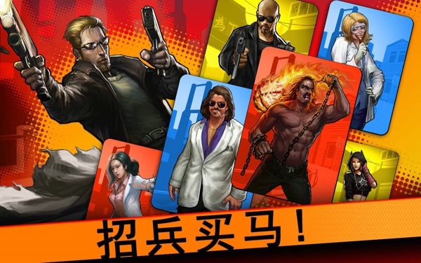 游戏中玩家将化身为黑社会头目,开始将拥有数张卡牌作为你的小弟去操控。对战时会出现非常真实的战斗场景。手下卡牌上的数字显示发动攻击前还需要等待的数,点击一个小弟,再点击攻击按键,选择一个敌人作为目标。你可以使用攻击、防御和支援三种技能,合理的排兵布阵,将是胜利的关键!