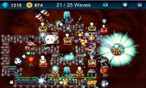 防御塔的攻击特效做的也十分绚丽,场面看起来特壮观。游戏的音乐质量一般,没有什么出彩的地方,战斗的声效也只是表现出了应有的效果,