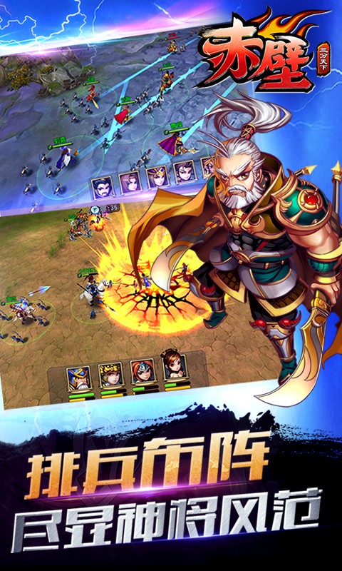 赤壁之战,4 X 8格自由搭配武将阵容。骑兵冲刺,弓兵贯射,枪兵紧随其后,尽显排兵布阵策略能力。运筹帷幄之中,决胜千里之外,让玩家体验秒杀敌人快感更加强烈。