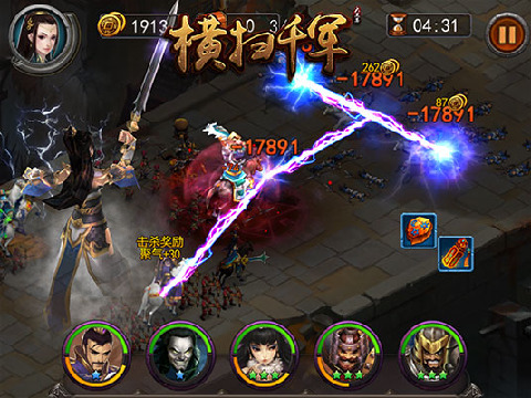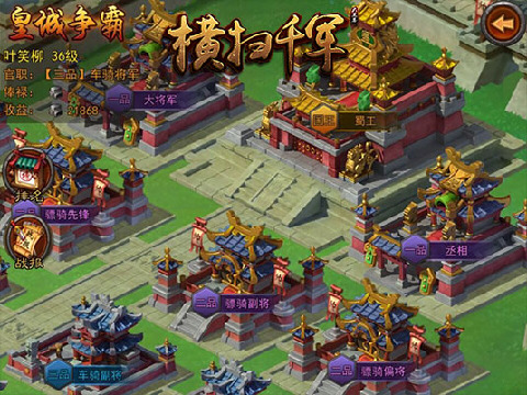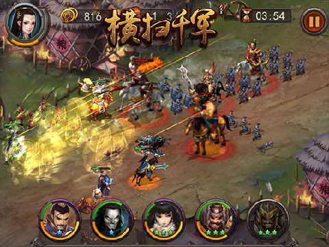心动网络《横扫千军》创新性地植入了内政和国家概念,配以拟真全地图国战。同时,在游戏中,有超过200名不同的三国时期真实的英雄人物协助玩家们征战天下,让玩家们亲自体验加官进爵、称帝为王的快感。