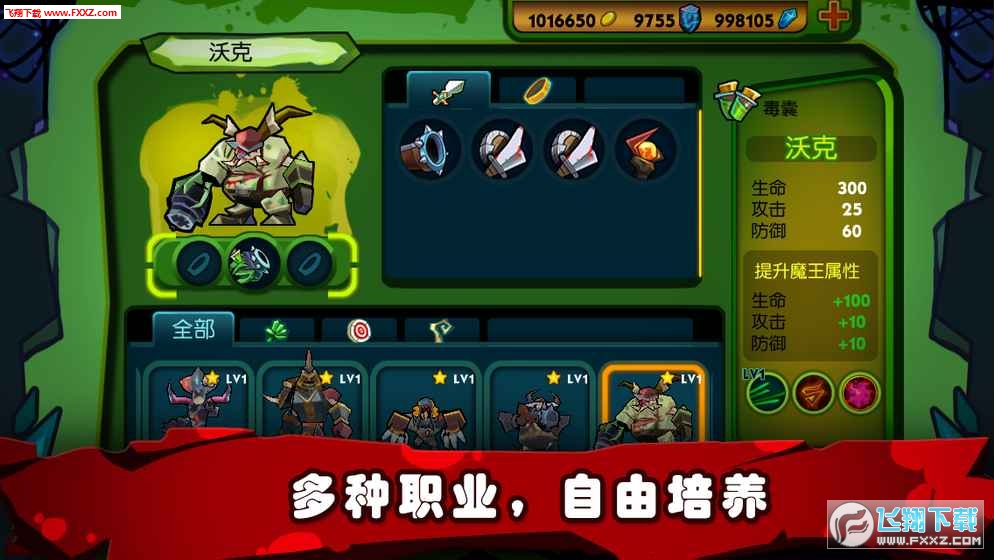 * 多种职业组合变化,可将对应的人类职业收为手下僵尸,更能让手下转职独有的僵尸职业