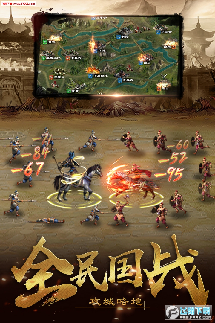 4、装备:装备分为武器、衣服、马和兵书4个部件以及白、绿、蓝、紫、橙五个品质。每个部件所增加的属性不同并且只能装备一件。装备可以通过强化来提升属性。