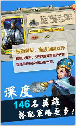 在经典COC的攻防匹配玩法的基础上,加入三国的一统天下和官职体系,结合1-7星的146名三国英雄的参战,以公平策略为核心,向永恒的三国志系列致敬!