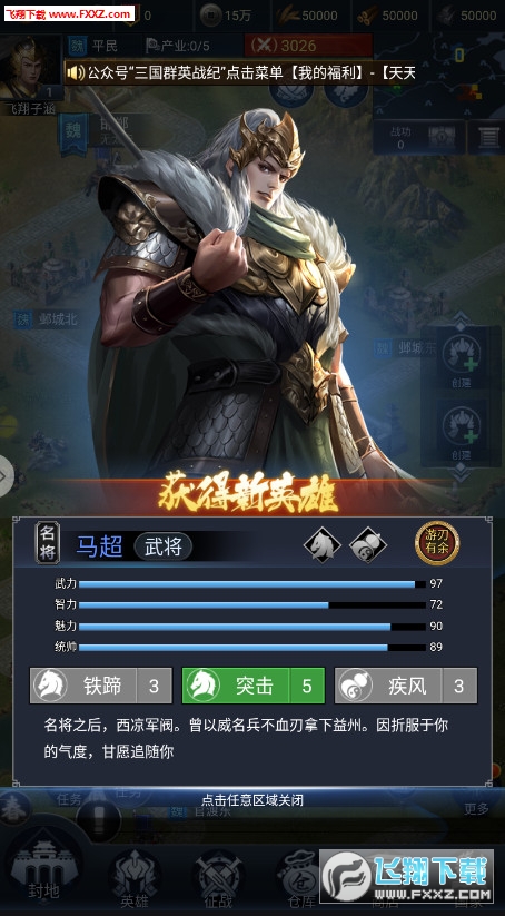 2.各种强大的三国将军应该结合起来,增强你的实力,招募三国名将去统治部队。