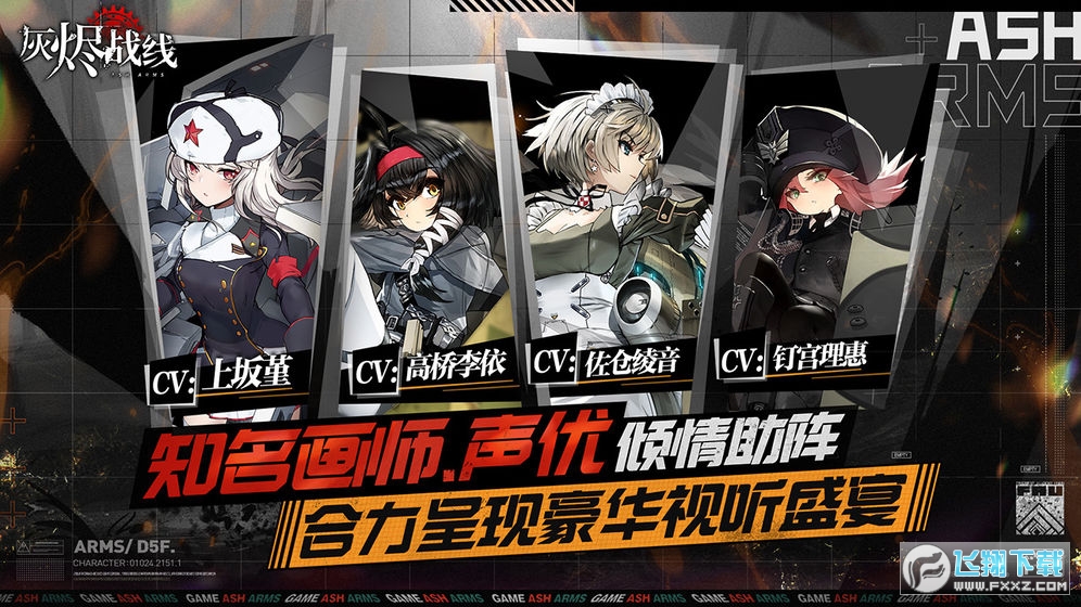 《灰烬战线》力邀上坂堇、高桥李依、佐仓绫音、钉宫理惠等多位日本超一线人气声优,为性格各异的军武萌娘献声。“DOLLS”立绘均由知名画师担当设计,所装备的兵器也全部经过严格考据,在细节方面尽数还原同名军武!
