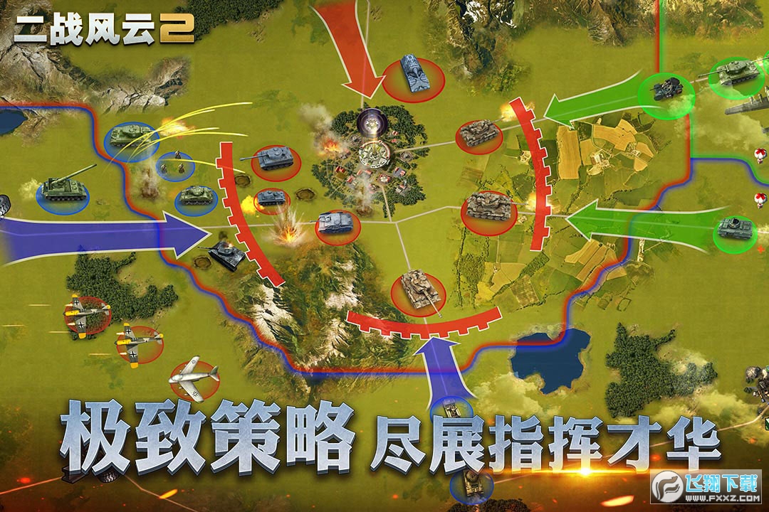 《二战风云2》是一款全真即时战略,独创七日百人战场,开局即战,从此告别枯燥漫长的建设。海陆空三军全兵种,即时指挥每一支部队,多元化战斗体验,热血沙场尽享快感!任意搭配,精妙配合协同作战!场场都是军团战,与战友抱团称霸大陆!硝烟、炮火,极致还原真实战场,重燃您的战火情怀!