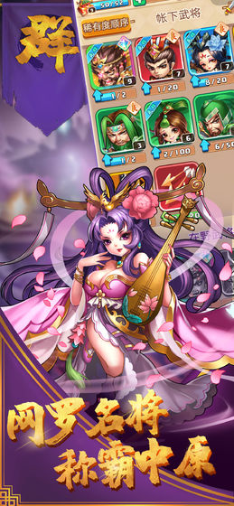 3、随机抽卡招募英雄的模式,上百个经典武将角色,划分不同的品质和职业。