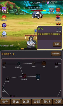 修个肝仙是设计非常独特的一款角色扮演类型的游戏,在这款游戏当中,玩家将会和各种不同的敌人进行战斗,并且为了能够增长自己的实力,玩家需要不断的进行冒险,战斗才可以获取更多的功力,完成更多的挑战,获得最终的胜利。