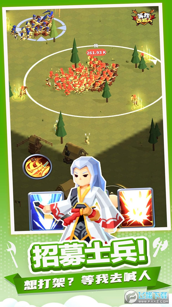 1、等我去喊人是一款多军团对战的休闲策略竞技游戏。
