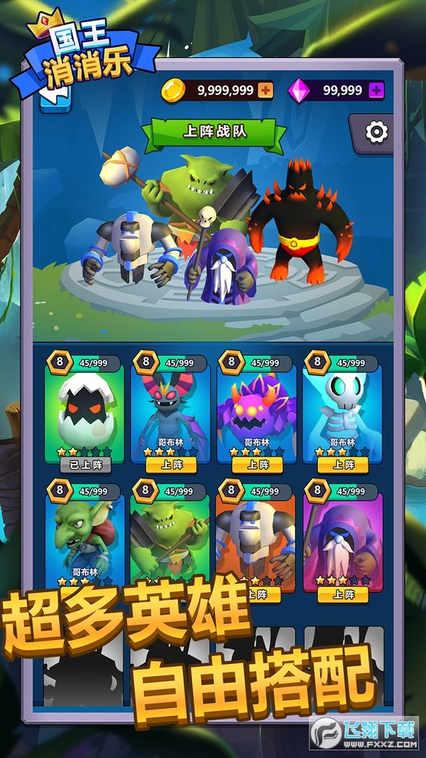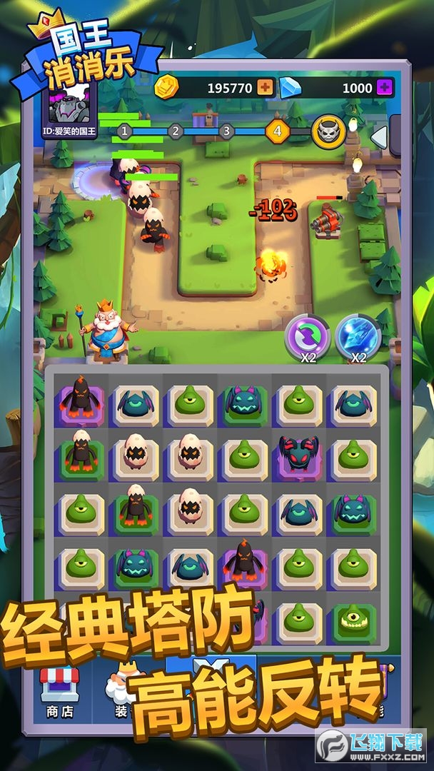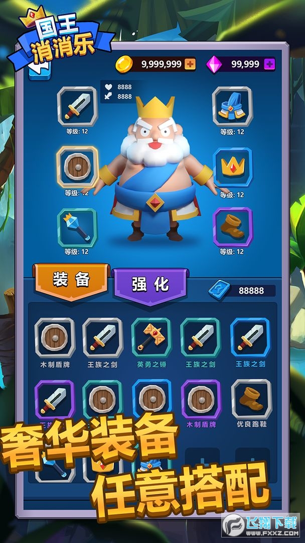 国王消消乐是一款消除游戏,领导你的人民建立一个更大的王国,消除竞争元素的乐趣攻击,解锁大量的故事和情节,物品增加你的分数。任何敌人都可以轻松解决,简单的画风,大量的怪物会攻击你的领土,可以消灭更多级别的英雄升级。