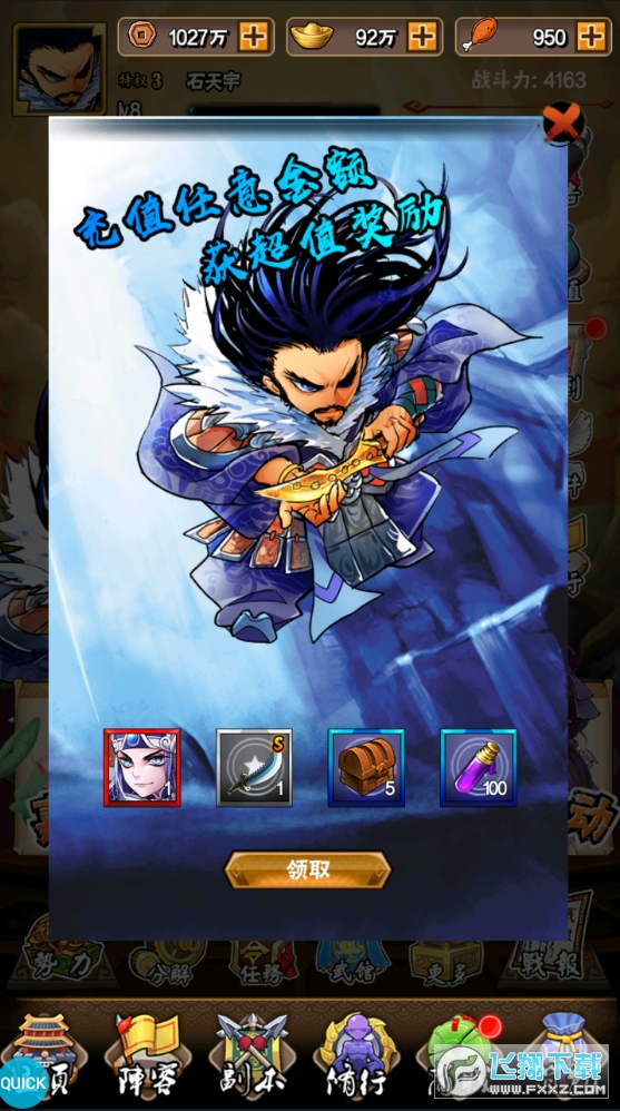 《群英赋OL-送GM送万充》是一款暴力修改的BT三国手游,游戏上线就送充值卡,7日在线,签到,副本宝箱再送充值卡,最高可领10000+充值卡;同时游戏还开启GM商城,每天1元宝购买海量材料;月卡每日赠送10w元宝,让你材料买买买,同时游戏爆率提升百倍,材料好爆,所有武将将魂游戏里均可获取,让你不花钱也能爽翻天;