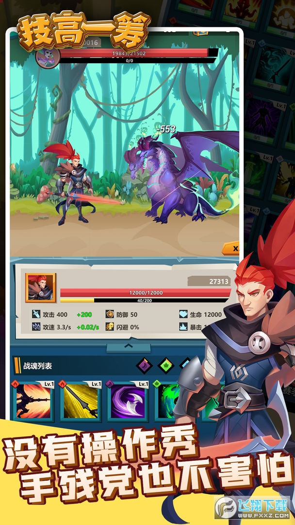 《技高一筹》是一款选技能闯关游戏,100+独立技能,每次从3个随机技能选择一个;游戏有非常多的角色可以供玩家选择,你将来到一个全新的世界开始冒险,不断的战斗提高自己的实力,可以去解锁很多厉害的武器装备使用,惩奸除恶就是你的道义,消灭坏人还老百姓一份安宁,赶紧来体验体验吧。