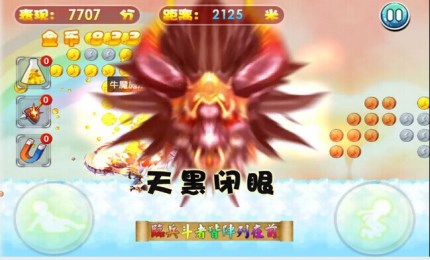 游戏中,你将扮演孙悟空、猪八戒、唐僧中的一位,通过跑酷的方式,消灭途中大大小小的妖怪,一路奔袭到牛魔王的老巢,与其展开生死大决战。你需要克服种种困难,努力地跑出更远的距离,跑得越远,你打击boss的时间越长,对牛魔王的伤害也就越大。