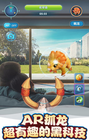 AR黑科技为手机游戏带来全新乐趣!玩家可以在游戏虚拟地图上发现恐龙,开启AR狩猎模式,运用手机摄像头以及各种触控操作对恐龙进行攻击,成功捕捉后便可开始驯养它们。