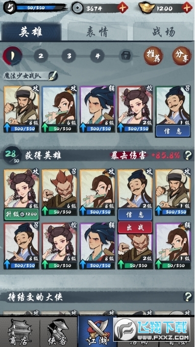 武功来了是一款非常好玩的手游,以武侠为主要游戏题材,结合了放置合成和塔防元素玩法,操作上也非常的简单。游戏主要考验玩家的策略头脑,还带有玩法,大家可以在这里建立一个自己的部队,并不断提升实力来迎接各种挑战。游戏整体玩起来还是很不错的,喜欢的小伙伴快来下载吧!
